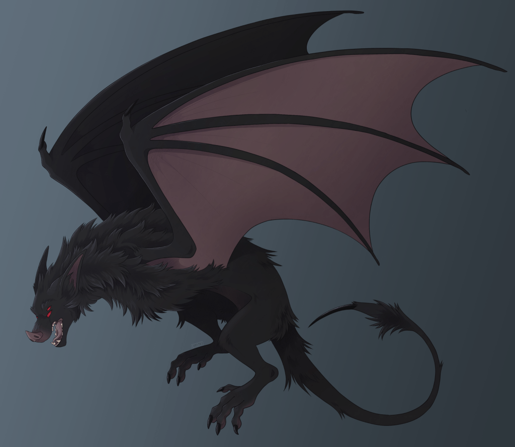 Referred to as ‘large mutant bat things’, by some, the Night terror truly is a terror. Standing over 3 meters tall and weighing in at over 3 tons, the night terror is one of only a handful of creatures who could ever hope to challenge a true dragon in combat. Scholars believe these creatures to not be a product of nature but rather divine creation by -Redacted.