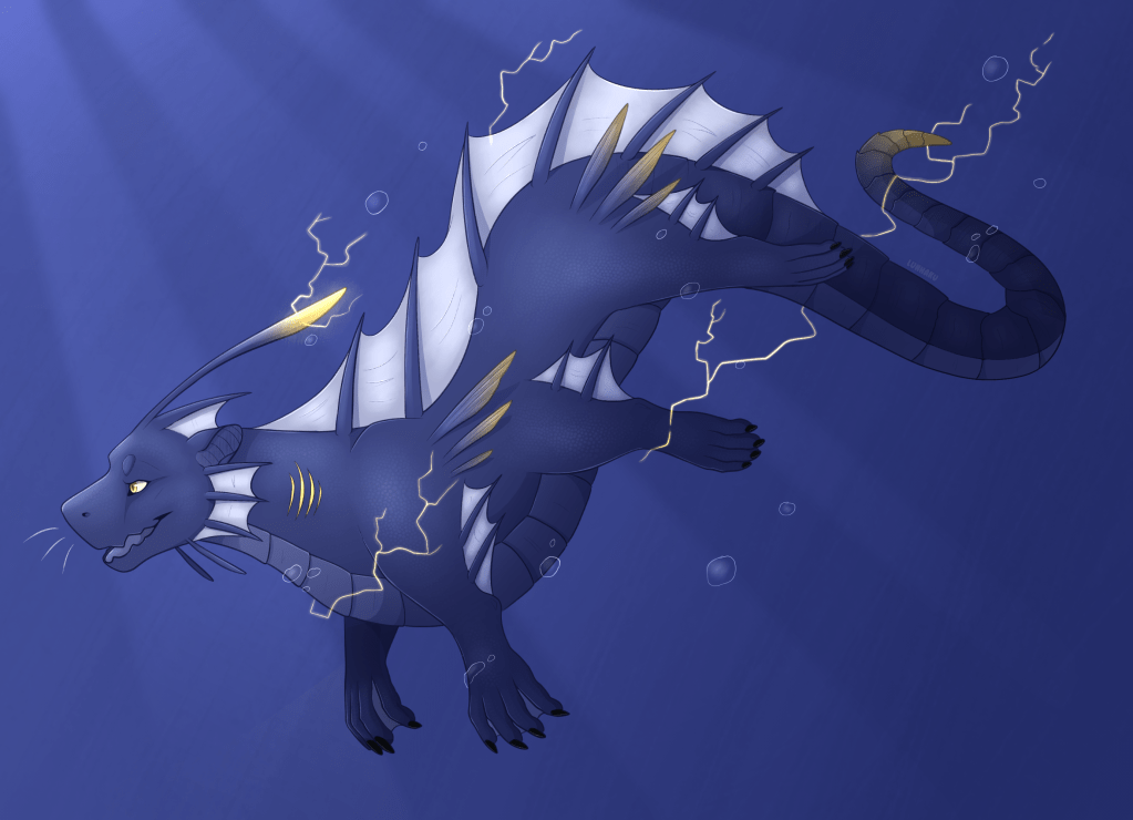 Dragonettes are an egg-laying species. The fertile period is during the summer, eggs are then laid during the fall and hatch in the early spring. A clutch usually consists of 1 to 3 eggs, though up to 5 is possible. The parents care directly for the children during the time on the nest and for the first year-ish of the kid’s life, at which point they are old enough to not need constant attention and to be raised with the other kids. Skin color in dragonettes varies with age, starting pure white as newborns and growing more and more silvery with age. Dragonettes grow quickly; at hatching they are considerably smaller than a human infant, but are considered young adults by 10-11, and reach full adult height by around 13-14 (though with a considerable amount of filling out still to go). Dragonettes commonly live to over 100 years old.